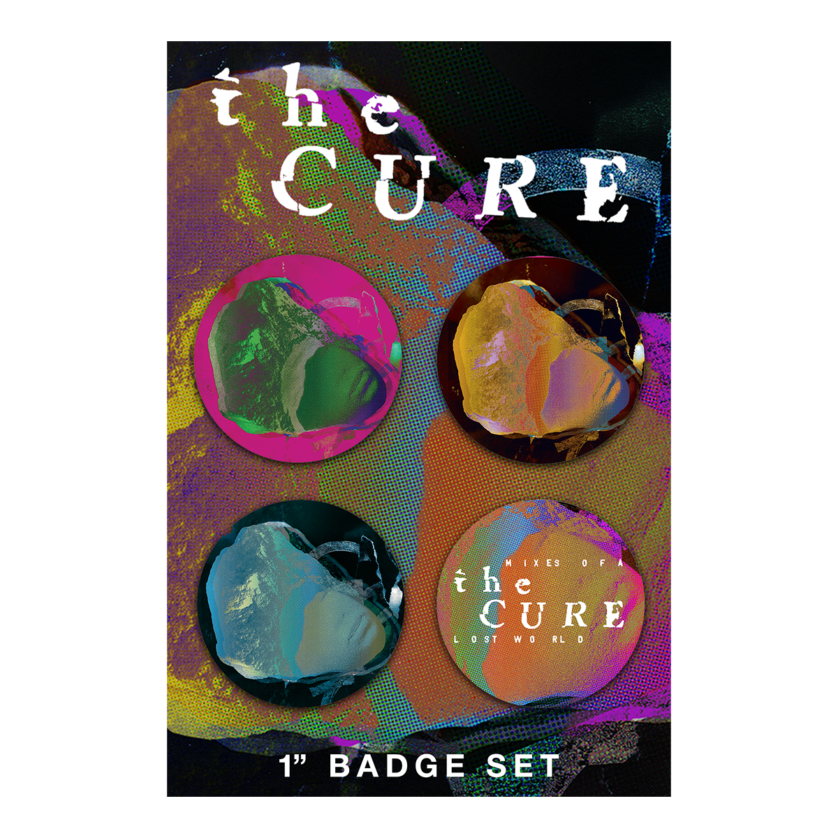 Button set includes four buttons with Mixes of a Lost World artwork.