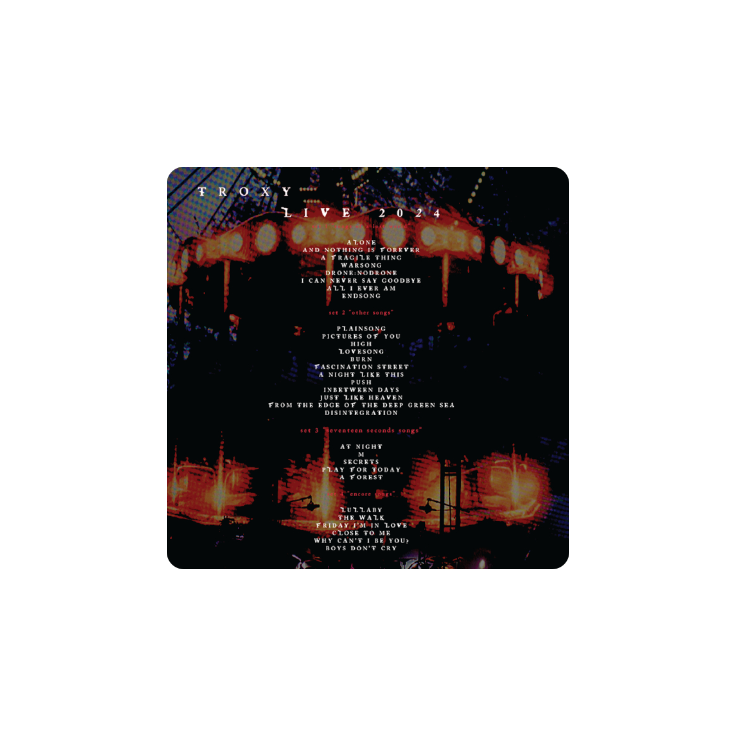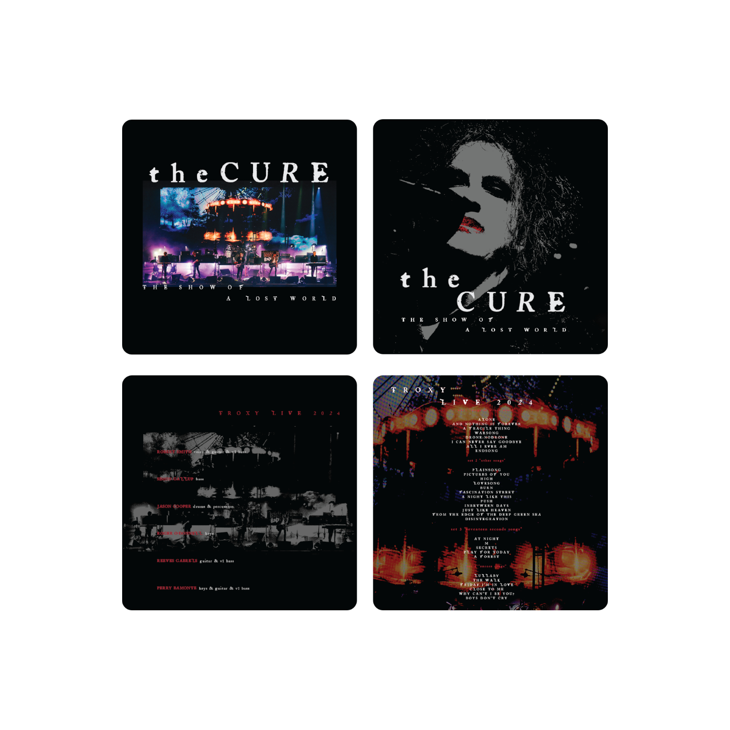Set of 4 coasters featuring artwork inspired by The Show Of A Lost World: Troxy London 2024. Each coaster measures 4"x4".